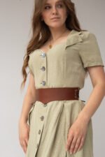 Завдяки фігурному V-подібному вирізу спереду, пояс візуально видовжує силует та витончено підкреслює лінію талії. Він ідеально пасує до суконь вільного крою, сорочок, тунік та навіть жакетів, додаючи образу структурованості.